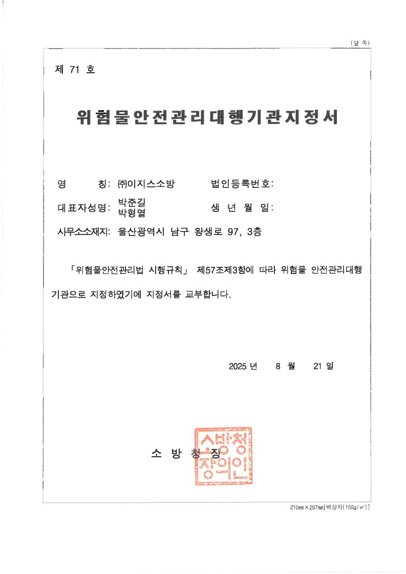 위험물안전관리대행기관_지정서_지정번호_제71호_250822_1.jpg